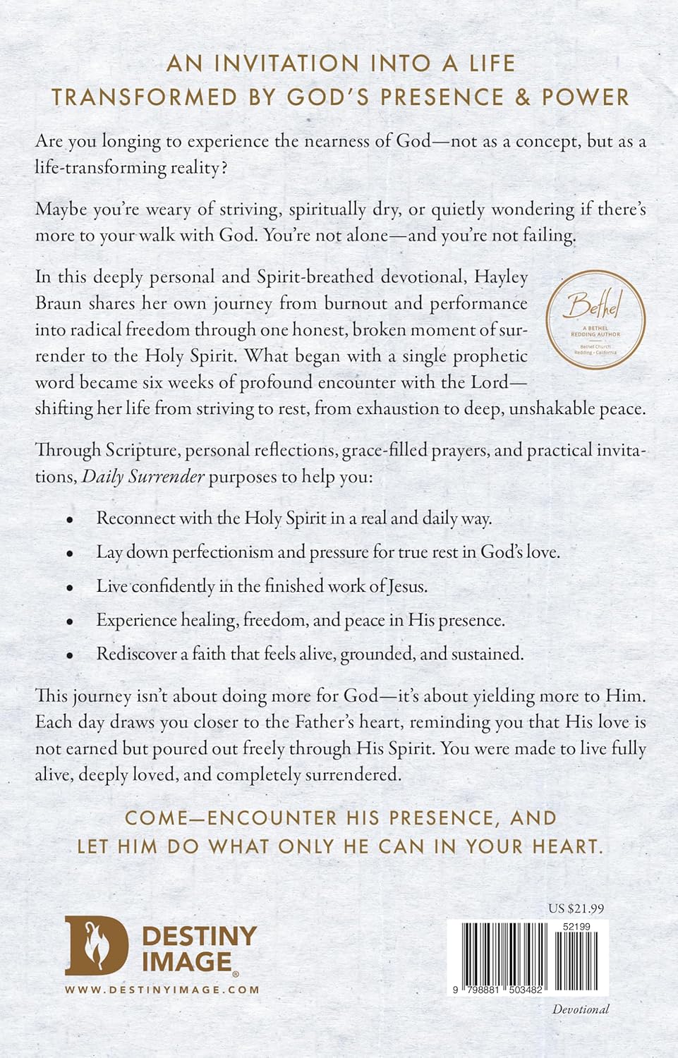 In this powerful devotional, Hayley Braun shares her raw, life-altering journey from spiritual exhaustion into a six-week outpouring of the Holy Spirit that changed everything. What began with a single prophetic word ignited an encounter so intense, it unraveled fear, striving, and insecurity—and ushered her into a lifestyle of supernatural connection with God.